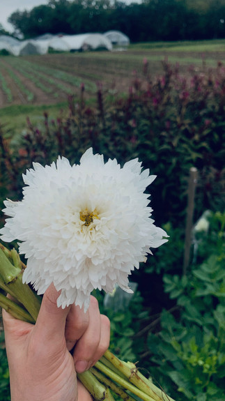 In July I started seeds for some of next year's blooms—hardy varieties like feverfew, rudbeckia, and sweet william—and we transplanted those seedlings into our field this week. They'll spend the next six to eight weeks rooting themselves before going dormant for winter. Rather than killing these plants, the freeze will ready them. When spring returns, they’ll grow up stronger and sooner with established root systems. Later this fall we’ll plant another round of slightly less hardy varieties in the high tunnel for more early spring blooms.